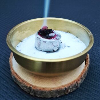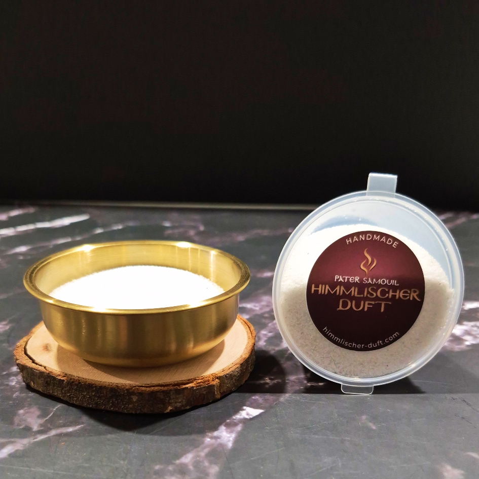 Το σετ περιλαμβάνει ένα επιχρυσωμένο θυμιαματό από ανοξείδωτο ατσάλι, ένα δίσκο από φυσικό ξύλο για βάση και την χαλαζιακή άμμο μας.