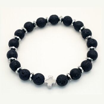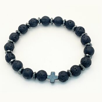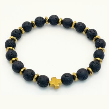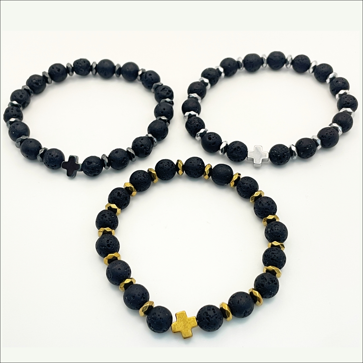 Τα βραχιόλια αποτελούν ένα εντυπωσιακό σύνολο που συνδυάζει την αισθητική της φυσικής ομορφιάς με την πνευματική βαθύτητα. Είναι κατασκευασμένο εξ’ ολοκλήρου από λάβα ηφαιστείου.