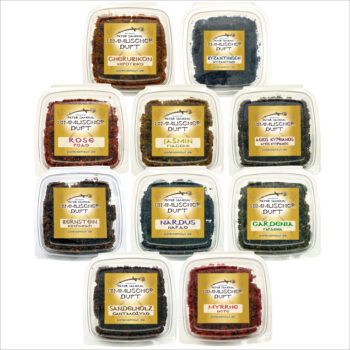 Unser absoluter Favorit ist Myrrhe: sanft, holzig und leicht süßlich, mit einer tiefen, harmonischen Note, die Ruhe und Klarheit fördert.